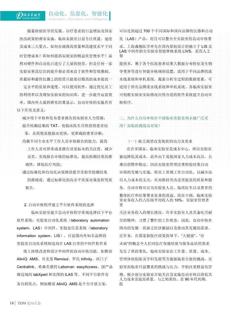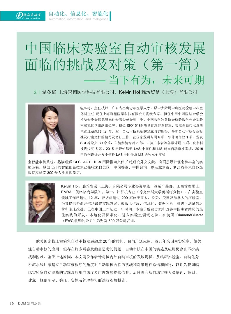 隨著臨床實驗室信息化自動化的迅速進展,計算機自動審核逐漸受到重視,國外實驗室自動審核的使用率較高,但國內(nèi)近幾年才開始發(fā)展使用,如何設置規(guī)范、全面、周全的自動審核規(guī)則?以何為載體設置?如何驗證?如何管理?已成為許多擬開展自動審核工作的實驗室迷惑及亟需掌握的共同問題。該報告主要針對AUTO-10A 指南進行詳細解讀解析、結(jié)合指南發(fā)表后國內(nèi)外不同專業(yè)領域自動審核的研究進展進行闡述和介紹,提出重要見解,為臨床實驗室開展自動審核工作提供借鑒和幫助。