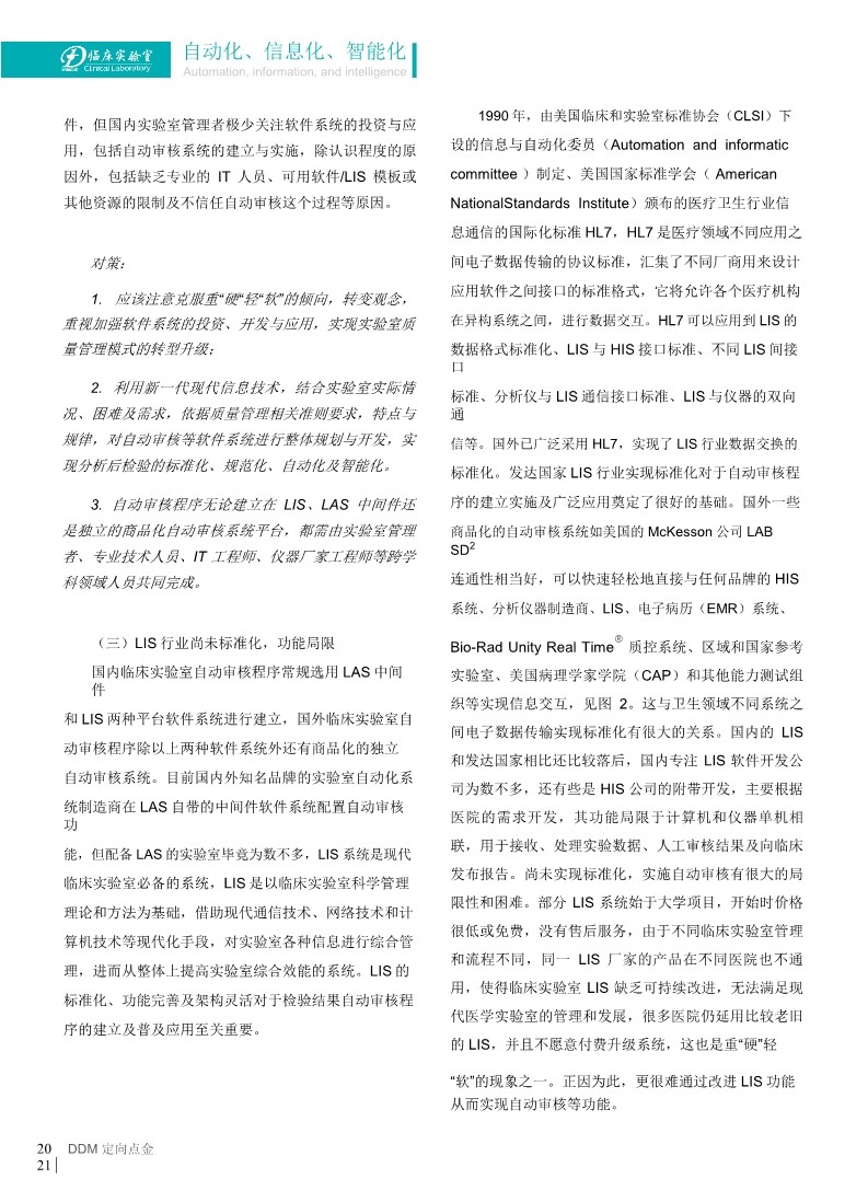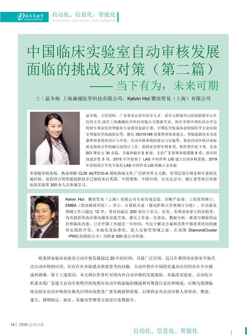 隨著臨床實驗室信息化自動化的迅速進(jìn)展,計算機(jī)自動審核逐漸受到重視,國外實驗室自動審核的使用率較高,但國內(nèi)近幾年才開始發(fā)展使用,如何設(shè)置規(guī)范、全面、周全的自動審核規(guī)則?以何為載體設(shè)置?如何驗證?如何管理?已成為許多擬開展自動審核工作的實驗室迷惑及亟需掌握的共同問題。該報告主要針對AUTO-10A 指南進(jìn)行詳細(xì)解讀解析、結(jié)合指南發(fā)表后國內(nèi)外不同專業(yè)領(lǐng)域自動審核的研究進(jìn)展進(jìn)行闡述和介紹,提出重要見解,為臨床實驗室開展自動審核工作提供借鑒和幫助。