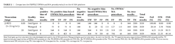 圖2:基于AI-MA智能實時質(zhì)控平臺構(gòu)建的PBRTQC指數(shù)加權(quán)移動均值法(EWMA)和移動均值法 (MA)程序的比較。