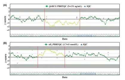 唐氏綜合征(DS),也稱為21三體綜合征,是活產(chǎn)嬰兒中最常見的染色體非整倍體疾病,全球范圍內(nèi)其出生發(fā)病率約為八百分之一,且目前尚無有效治療方法。因此,產(chǎn)前血清篩查成為檢測唐氏綜合征胎兒的重要手段。室內(nèi)質(zhì)控是最常見的質(zhì)量控制工具, 用于監(jiān)測常規(guī)實驗的性能。 然而,傳統(tǒng)的室內(nèi)質(zhì)控方法在監(jiān)測分析質(zhì)量方面存在諸多局限性,如基質(zhì)效應(yīng)、非互換性、穩(wěn)定性差、檢測范圍不適當以及質(zhì)量監(jiān)測不連續(xù)等,這可能導(dǎo)致誤報或無法快速檢測到真正的警報,最終影響檢測結(jié)果的準確性。
