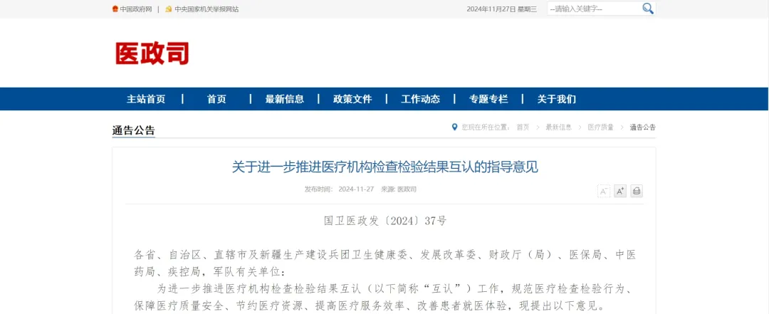 強化醫(yī)保政策支持引導。加快落實國家層面統(tǒng)一的醫(yī)學影像、超聲等檢查檢驗醫(yī)療服務價格項目立項指南,做好部門間信息共享,為定點醫(yī)療機構互認檢查檢驗結果提供便利,降低定點醫(yī)療機構儲存和調閱服務成本。 加強信息化保障支持。各地要加強省統(tǒng)籌區(qū)域全民健康信息平臺、醫(yī)保信息平臺、省級“影像云”以及網絡存儲等基礎設施建設,并做好相關信息化平臺的日常維護和數(shù)據(jù)交換。2025年底前,所有二級及以上公立醫(yī)院實現(xiàn)檢查檢驗結果跨機構調閱,20個省份實現(xiàn)檢查檢驗結果跨省調閱;2027年,基本實現(xiàn)檢查檢驗結果全國互通共享。 完善醫(yī)療機構內部考核機制。醫(yī)療機構要落實以增加知識價值為導向的分配政策。鼓勵醫(yī)療機構結合實際將互認工作落實情況納入內部績效考核,把績效考核與薪酬分配更好結合起來。