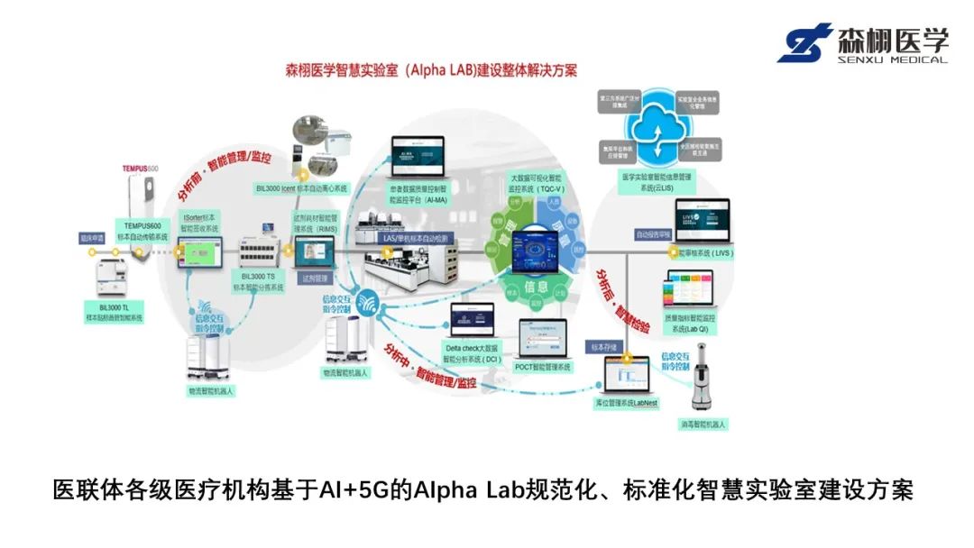 森栩醫(yī)學(xué)基于AI+5G的AIpha Lab智慧實驗室整體解決方案依據(jù)國際國內(nèi)行業(yè)規(guī)范及質(zhì)量管理指南準(zhǔn)則要求開發(fā),基于科技創(chuàng)新技術(shù),將系列智能應(yīng)用管理軟件與自動化、智能化硬件相結(jié)合,軟硬兼容,實現(xiàn)數(shù)據(jù)流、樣本流、試劑流、質(zhì)量流、設(shè)備流及效益流等全程閉環(huán)聯(lián)動;PC端、IPAD平板、大屏幕、智能手機(jī)、智能機(jī)器人等多種智能設(shè)備與智能應(yīng)用管理軟件同步,滿足“全過程、全方位質(zhì)量管理追溯體系”的cGMP要求。符合ISO15189醫(yī)學(xué)實驗室認(rèn)可等國際準(zhǔn)則質(zhì)量管理要求,實現(xiàn)區(qū)域內(nèi)不同等級醫(yī)療機(jī)構(gòu)實驗室人機(jī)物料環(huán)一體化、規(guī)范化、標(biāo)準(zhǔn)化管理、全流程的可視化及智能化質(zhì)量管理,促進(jìn)基層醫(yī)院信息化建設(shè)和醫(yī)療服務(wù)同質(zhì)化發(fā)展。